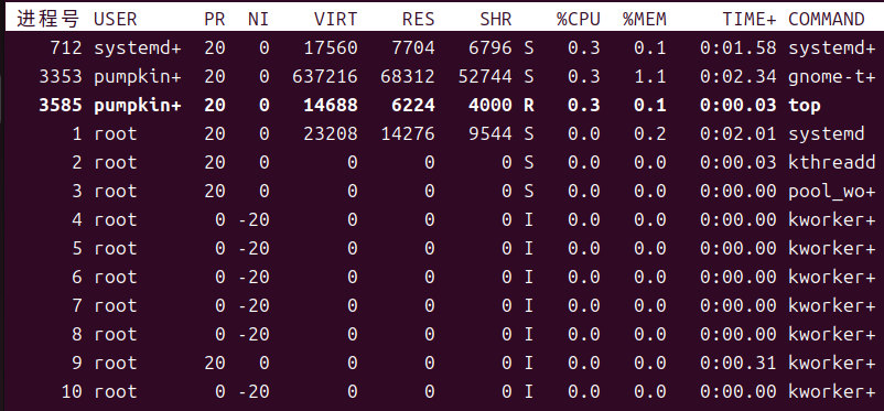 | M键 | 按下M键,根据驻留内存大小(RES)排序 |