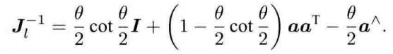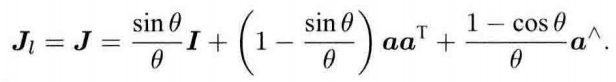 最后得到旋转后的点相对于李代数的导数:$$\frac{\partial(Rp)}{\partial R}=-(Rp)^{\wedge} \mathbf{J_{l}}$$