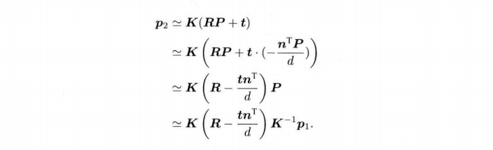 根据$p_{2} \simeq K(RP+t)$,得到: