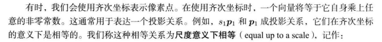 上述两个投影关系可以写为:$$p_{1} \simeq KP \;\;\;\;\;\;\;\; p_{2} \simeq K(RP+t)$$