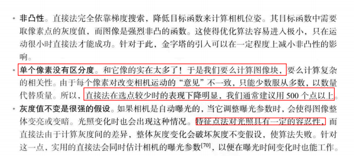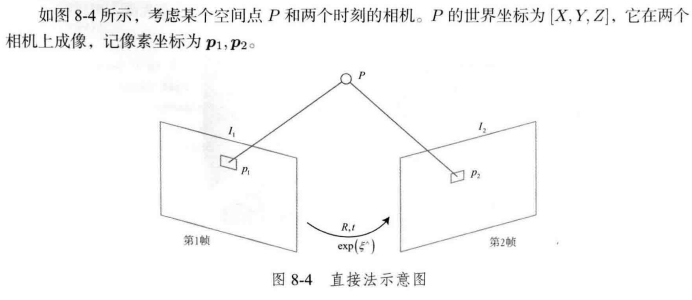 在直接法中,没有特征匹配这个东西,无从知道哪一个$p_{2}$与$p_{1}$对应着同一个点。