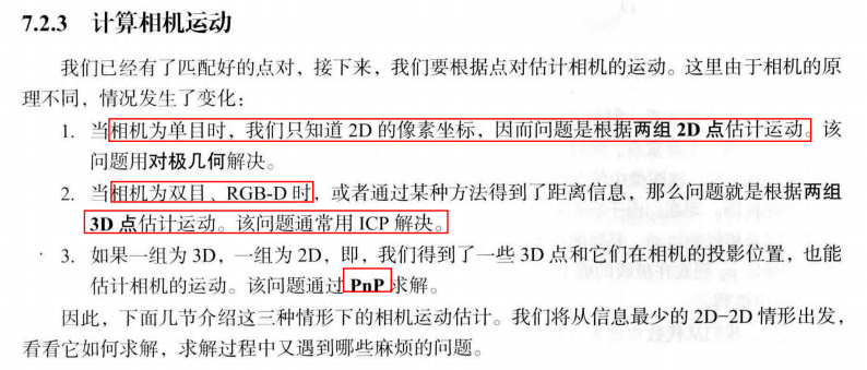 这里的ICP是指已由图像特征给定了匹配的情况下进行位姿估计的问题。在匹配已知的情况下,这个最小二成问题实际上具有解析解,所以没有必要进行迭代优化。