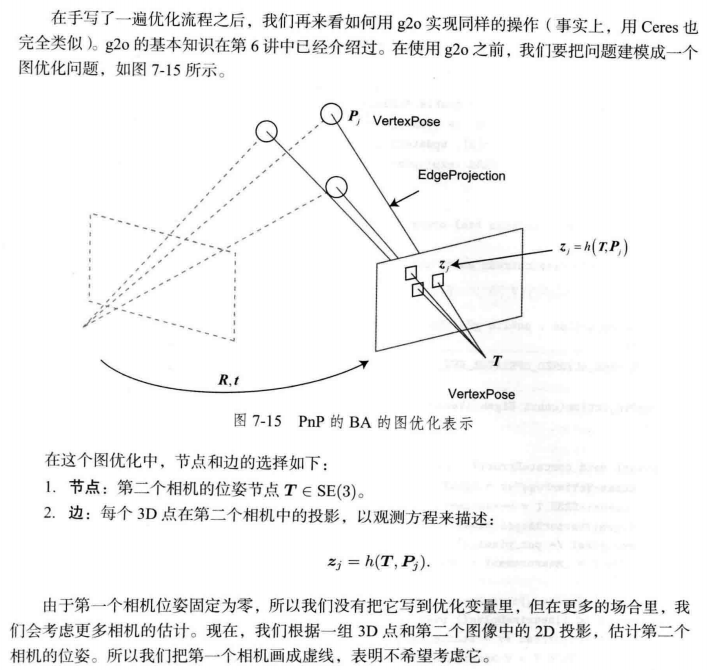 在某些场合下,例如在RGB-D SLAM中,一个像素的深度数据可能有,也可能测量不到,所以可以混合着使用PnP和ICP优化:对于深度已知的特征点,建模它们的3D-3D误差;对于深度未知的特征点,则建模3D-2D的重投影误差。于是,可以将所有的误差放在同一个问题中考虑,使得求解更加方便。